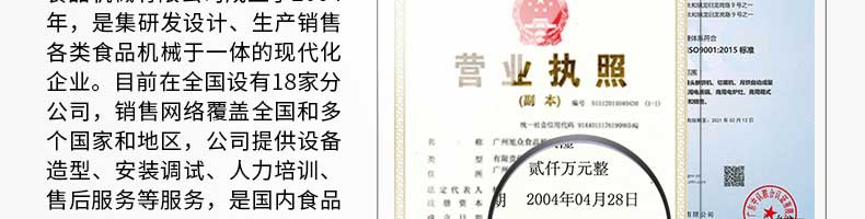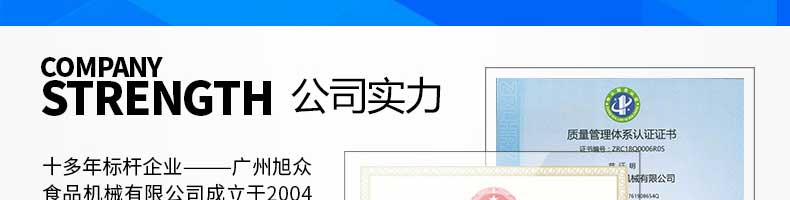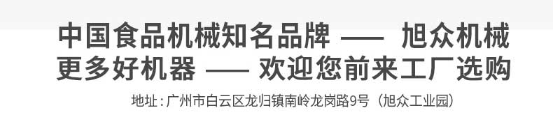 廣州旭眾食品機(jī)械有限公司是一家集科研開發(fā),生產(chǎn)設(shè)計(jì),營銷服務(wù)為一體的現(xiàn)代化生產(chǎn)企業(yè)?,F(xiàn)代化生產(chǎn)車間,精湛制造技術(shù),所產(chǎn)機(jī)械歷經(jīng)市場(chǎng)重重考驗(yàn),不斷贏得海內(nèi)外客戶的贊譽(yù)。