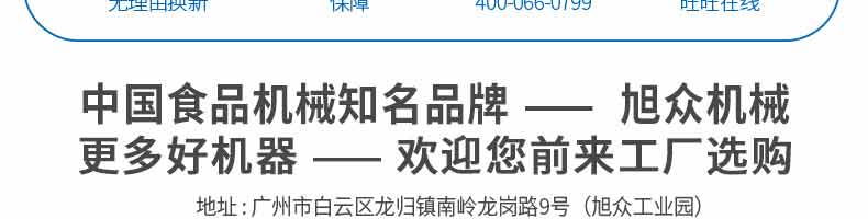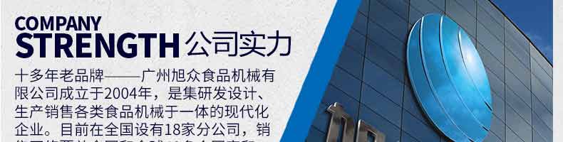 廣州旭眾食品機(jī)械有限公司是一家集科研開發(fā),生產(chǎn)設(shè)計,營銷服務(wù)為一體的現(xiàn)代化生產(chǎn)企業(yè)。現(xiàn)代化生產(chǎn)車間,精湛制造技術(shù),所產(chǎn)機(jī)械歷經(jīng)市場重重考驗,不斷贏得海內(nèi)外客戶的贊譽。