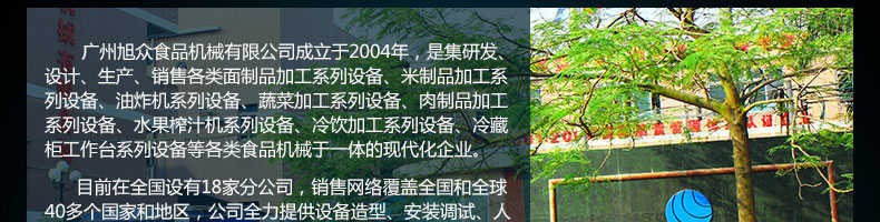 廣州旭眾食品機(jī)械有限公司是一家集科研開(kāi)發(fā),生產(chǎn)設(shè)計(jì),營(yíng)銷服務(wù)為一體的現(xiàn)代化生產(chǎn)企業(yè)。現(xiàn)代化生產(chǎn)車間,精湛制造技術(shù),所產(chǎn)機(jī)械歷經(jīng)市場(chǎng)重重考驗(yàn),不斷贏得海內(nèi)外客戶的贊譽(yù)。