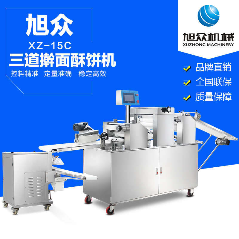 xz-15c三道搟面酥餅機(jī),仿手工制作面食產(chǎn)品的機(jī)型,占地面積小,重量輕,運(yùn)用搟面杖壓面和打擊面團(tuán),以保證高面筋性和面帶的密度,并綜合考慮面食的口感而研發(fā)。可生產(chǎn)東北糖酥餅,東北大香酥餅,蘇式月餅,芝麻餅,鮮花餅,老婆餅。購(gòu)機(jī)免費(fèi)提供工藝技術(shù)