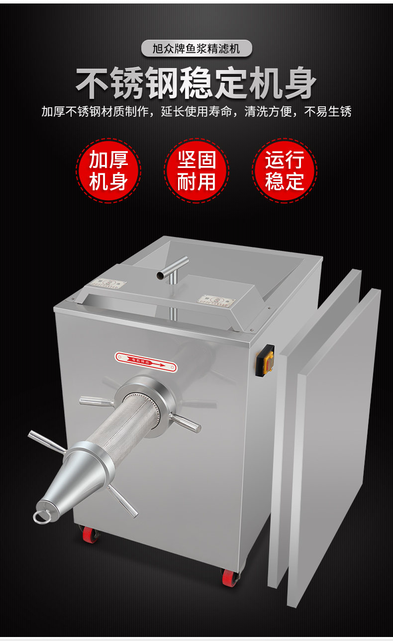SZJ-300魚漿精濾機(jī),商用創(chuàng)業(yè)魚漿精濾機(jī),用于配套魚肉采肉機(jī)進(jìn)行魚肉過濾雜質(zhì)。節(jié)省人工開支,人工加工魚漿,效率慢剔除魚細(xì)骨,不干凈,有了魚漿精濾機(jī),一人就可以很快制作多種魚漿。